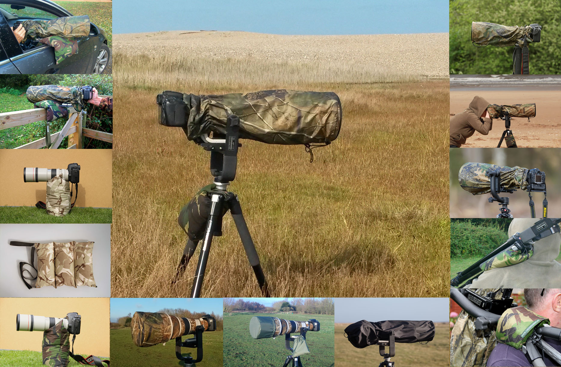 We have a new Online Store, please purchase from this store. www.cameraaccessoriesoutdoors.co.uk click on image below to take you to store We make custom fit waterproof camouflage Camera Lens Covers and Lens end Caps, Camera Bean Bags, waterproof Shoulder Pads for carrying tripods. Click on links above to purchase. For Europe and World purchases click on title "Links" above and click on photo, or click on photo below, which also takes you direct to our eBay shop. Click on this image below for Ebay shop